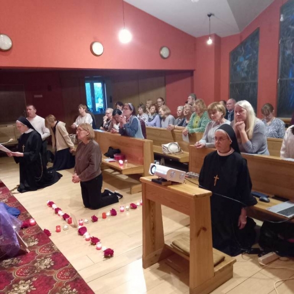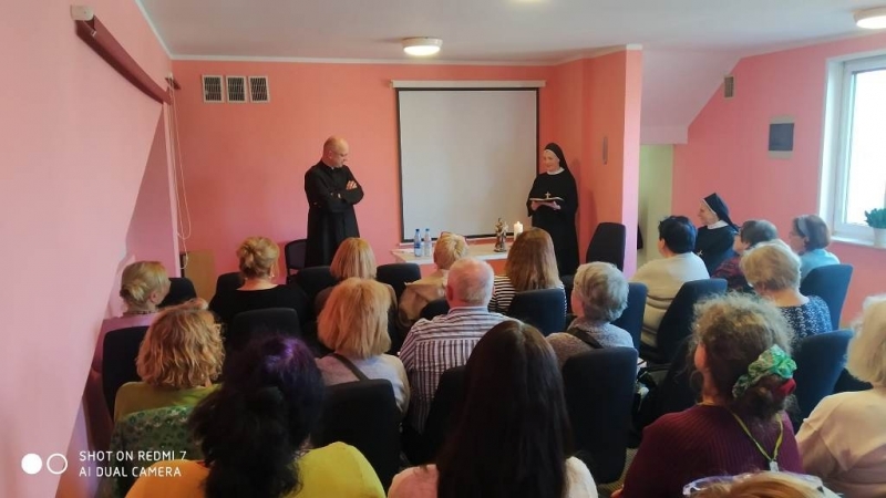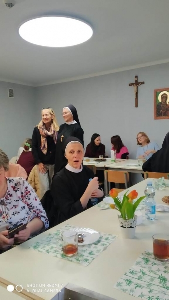 Ojciec Roman na podstawie Listu Ojca św. Franciszka „Patris Corde” ukazał Św. Józefa jako: Ojca miłującego - miłość, to odpowiedzialność za siebie i drugą osobę. Ojca posłusznego - to zgoda na działanie Boga w moim życiu, to też milczenie, by usłyszeć głos Boga w swoim sercu i usłyszeć się nawzajem. Ojca twórczej odwagi - aby w każdej sytuacji, szczególnie w tej trudnej, odnaleźć „Boże światło w ciemnym tunelu”. W rekolekcjach uczestniczyli członkowie MGŚJ z Gniewa, Jeżewa, ze Smolca ,Lipinek, Krakowa, Kluczborka, Tarnowa, oraz s. M. Ancella, s. M. Paschalis i s. Maria Franciszka. Członkowie Grup, którzy z różnych powodów nie mogli uczestniczyć w tym świętym czasie, byli obecni duchowo w modlitwie. Wspólnota rekolekcyjna wdzięcznym sercem modliła się w intencji naszej Matki Wandy i każdej Siostry . Nie brakło też prośby o dar nowych powołań do Zgromadzenia i do Grup Św. Józefa. Wspólnie modliliśmy się w aktualnych potrzebach Kościoła i świata, szczególnie wypraszając dar pokoju. W piątek , w dniu, w którym szczególnie łączymy się z Męką Pana Jezusa, w kaplicy, została odprawiona Droga Krzyżowa. Przy rozważaniu poszczególnych stacji, można było zapalić swoją święcę, które ułożone zostały w kształcie krzyża. Wieczorem uczestniczyliśmy w Apelu Jasnogórskim , a w sobotę mieliśmy możliwość uczestniczyć we Mszy św. odprawianej przez naszego Ojca Rekolekcjonistę O. Romana – jako głównego celebransa w kaplicy Matki Bożej Jasnogórskiej, powierzając Maryi nasze intencje i intencje nam powierzone. Po obiedzie wraz z Ojcem Rekolekcjonistą odwiedziliśmy nasze Siostry pracujące w Specjalnym Ośrodku Wychowawczym . S. Wera przybliżyła nam pracę sióstr i osób zatrudnionych w prowadzenie dzieła naszego Zgromadzenia. W czasie odwiedzin nie brakło też czasu na kawę i radość ze wspólnego spotkania, na które również została zaproszona s. Milena, opowiadając o swojej pracy z ubogimi i bezdomnymi. W ostatnim dniu, podczas niedzielnej Mszy św. uczestnicy rekolekcji z własnej inicjatywy zebrali ofiarę pieniężną, która została przeznaczona na cele misyjne naszego Zgromadzenia. Czas rekolekcji był dla wszystkich czasem modlitwy i skupienia, pogłębienia wiary i duchowości Św. Józefa. Na spotkaniu podsumowującym rekolekcje dzielono się refleksją z przeżytego czasu , radością i i wdzięcznością siostrom za dar wspólnego spotkania.